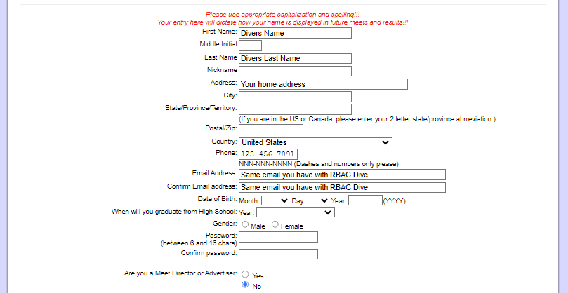 Navigating the world of diving meets can be tricky, but we are hoping that these instructions can help set you up and/or make sure your account is up to date.